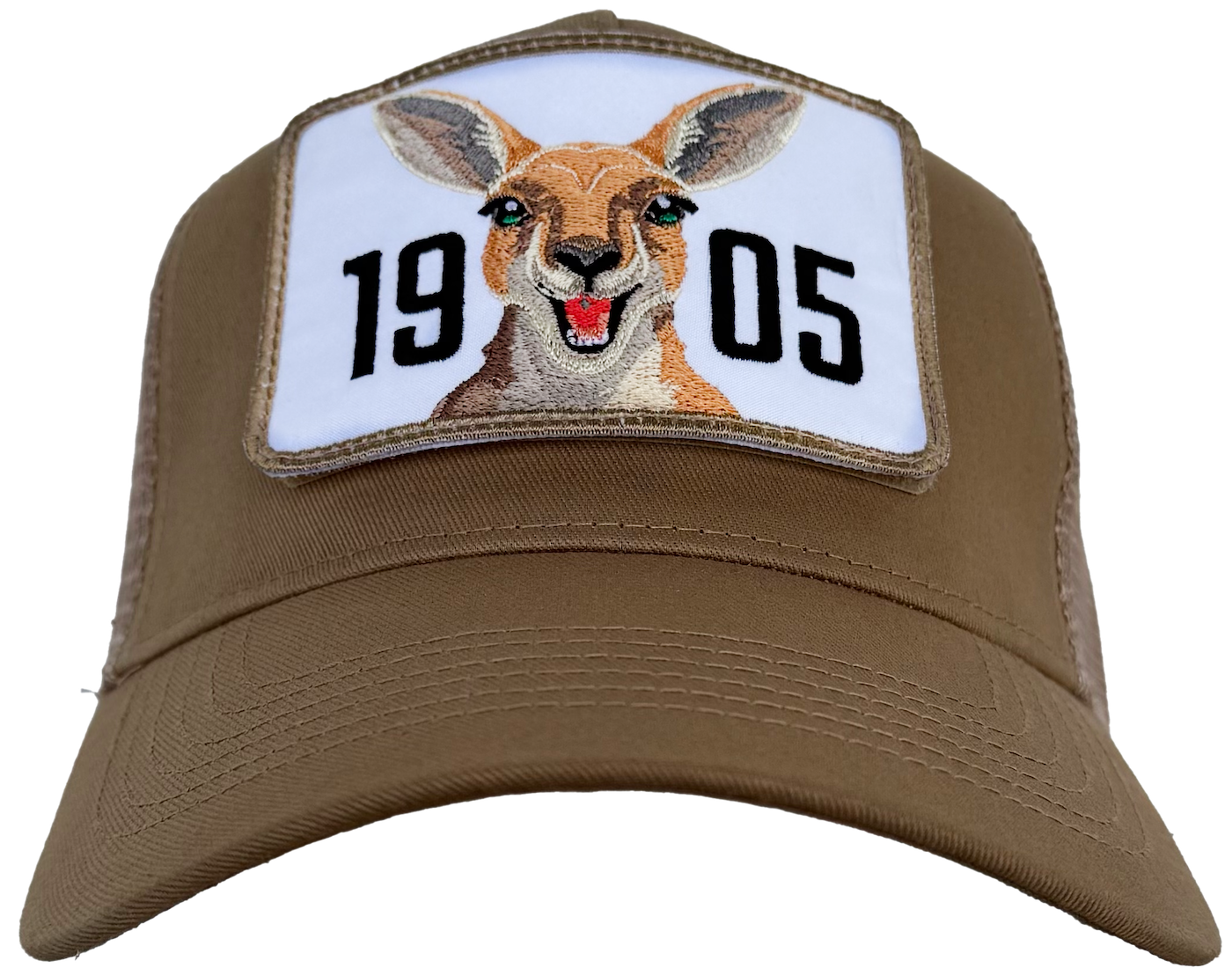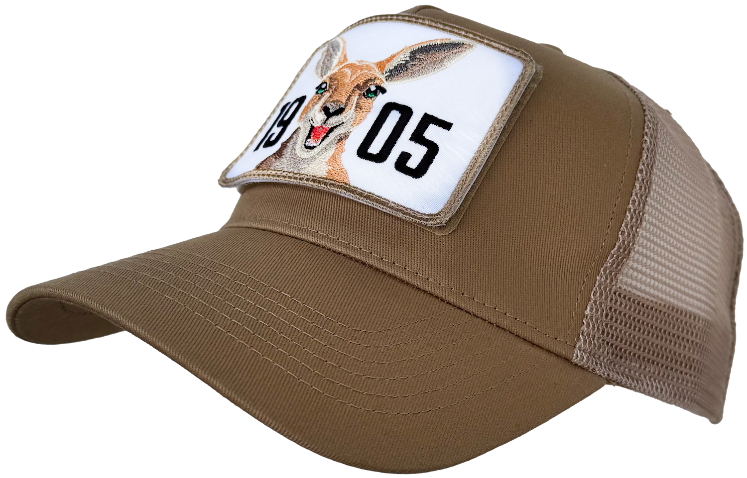 • Béžový kšiltovka s vyměnitelným štítkem na suchý zip, výšivka klokana a 1905