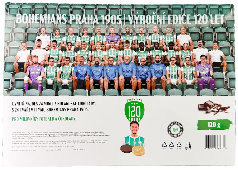 • Uvnitř najdeš 24 mincí z holandské čokolády s tvářemi týmu