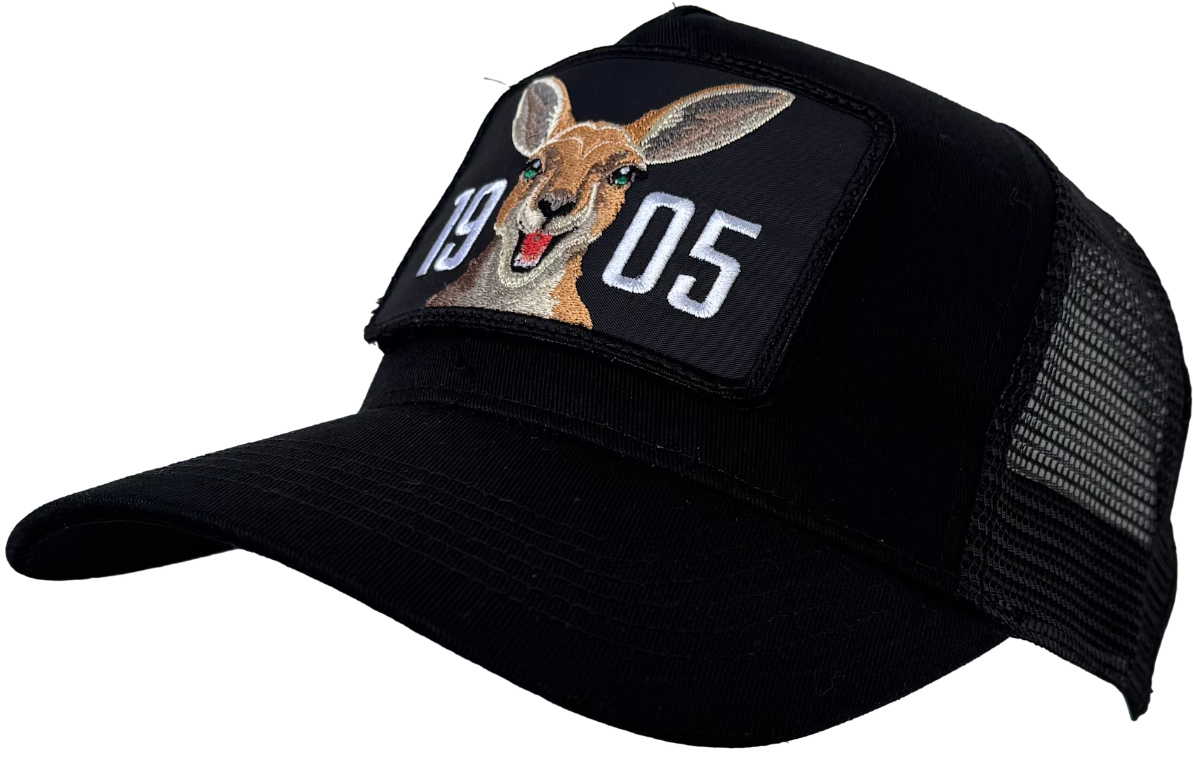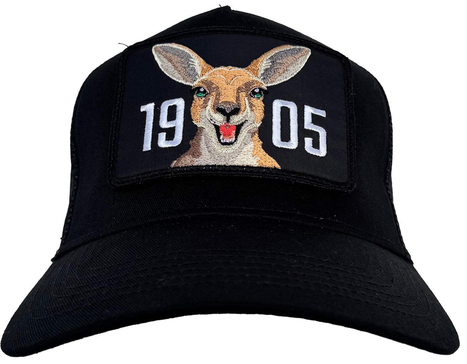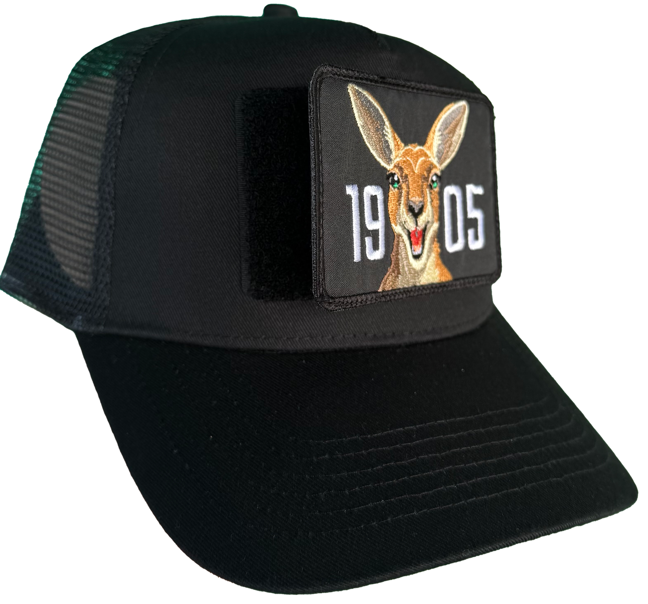 • Černá kšiltovka s vyměnitelným štítkem na suchý zip, výšivka klokana a 1905