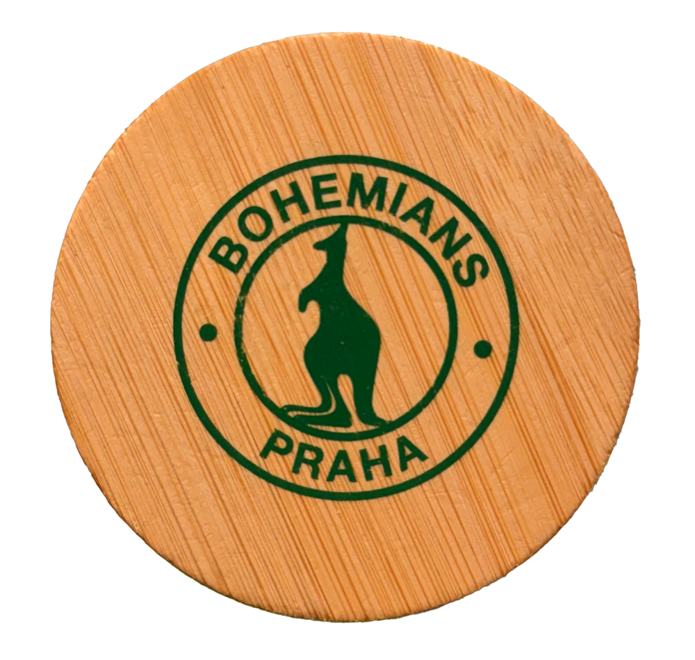 • Bambusový podtácek s otvírákem s potiskem znaku Bohemians Praha 1905