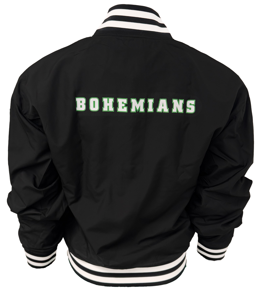 • Černá šusťáková bunda typu college s potisky Bohemians Praha 1905