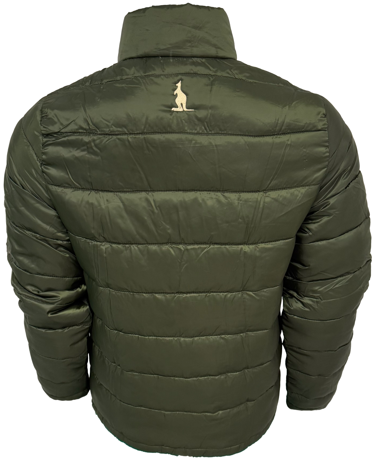 • Olivová prošívaná bunda s výšivkou na prsu Bohemians a na zádech klokan
