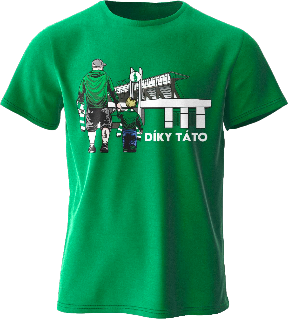 • Zelené pánské tričko s potiskem DÍKY TÁTO