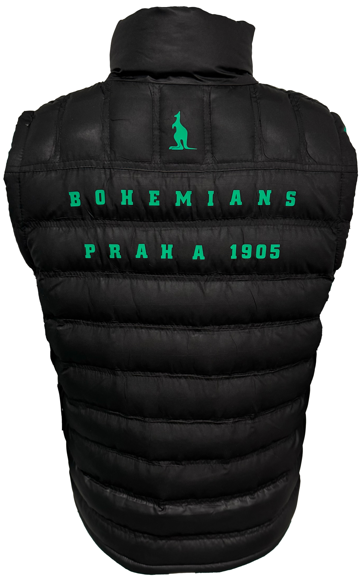 • Černá vesta Bohemians Praha 1905 s 3D potiskem- na levém prsu nápis Bohemka a na zádech klokan a Bohemians Praha 1905